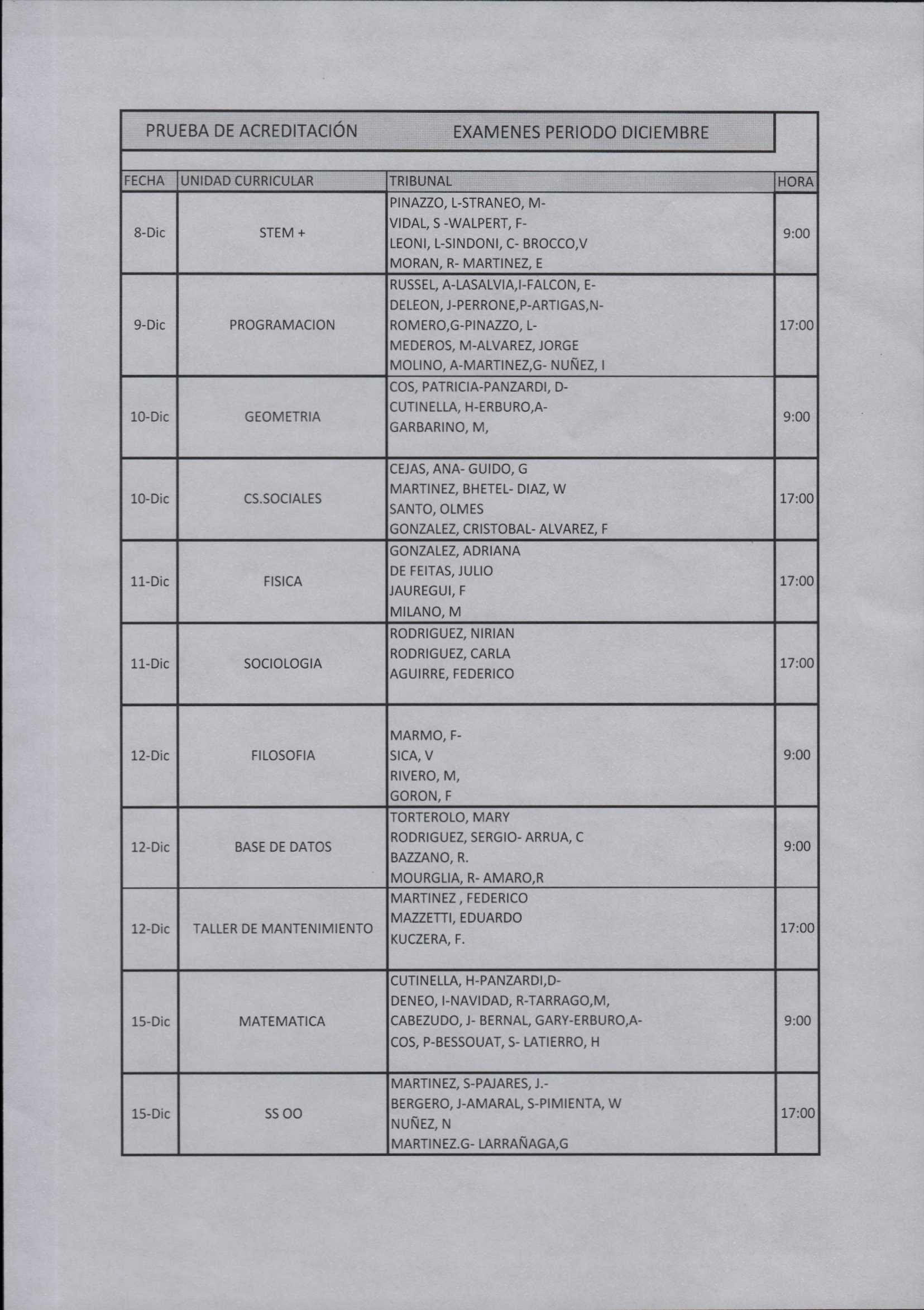 | EXAMENES DICIEMBRE | Ver calendario |